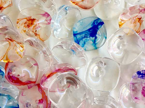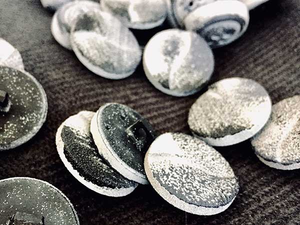 La duttilità dei materiali di origine plastica come l’ABS ci permette di realizzare bottoni e accessori innumerevoli forme, come profili bombati e non, dimensioni e finiture, come l’imitazione della perla. Proprio questa sua flessibilità nella fase di lavorazione lo rende un materiale particolarmente indicato nella produzione di bottoni particolari, che in fase di rifinitura possono essere galvanizzati per ottenere l’aspetto di metalli preziosi.